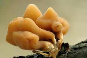 Na modřínové větvičce byli brvenky Hahnovi, ale foto se mi pro jejich drobnost moc nepovedlo, tak si počkejte na Jonasovy detaily. Dám fotku jiné houbičky, kterou jsem nejdřív nemohl identifikovat...kdo ji zná toho asi nezmate nezvyklý tvar.