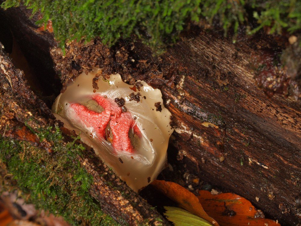 5.10.2016 na trouchnivějícím kmeni buku zaklíněný mezi kůru a kmen, Bukovské vrchy, Pod Ruským